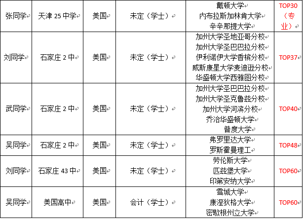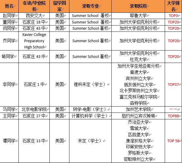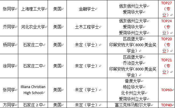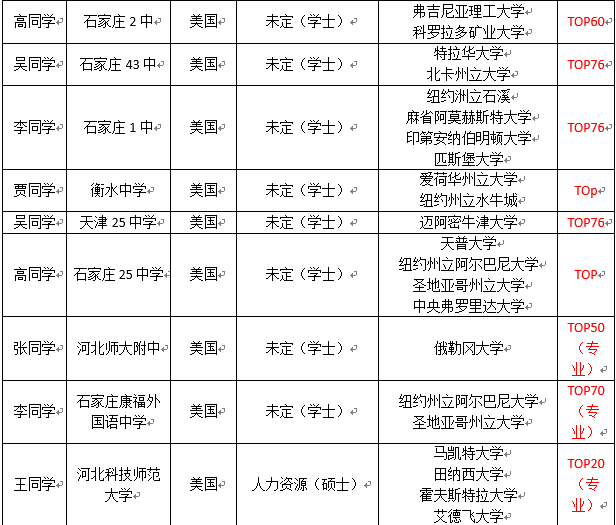 2015 年石家庄美国留学捷报榜(部分)