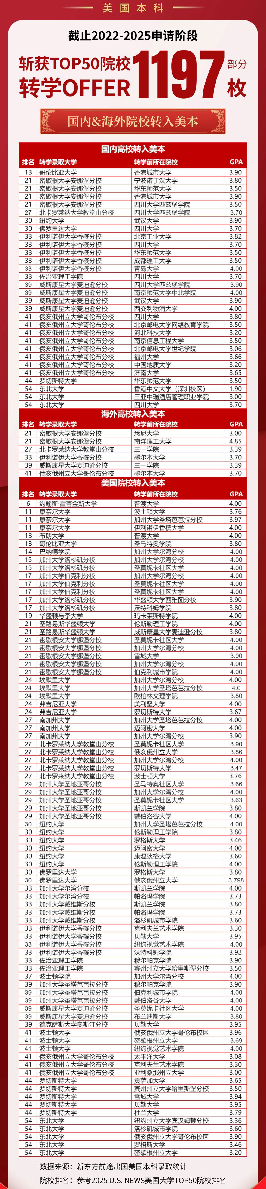 Top30、Top50 | Top30、Top50 | Top10、Top30 | 常春藤录取、Top50 |