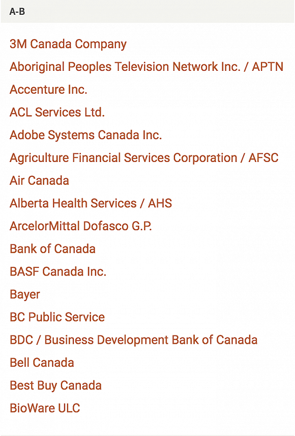 在这次的名单中,多伦多所在的安大略省的3M Canada Company名列榜首,温哥华所在的英属哥伦比亚省(BC省)共有12家企业或组织入围百强,其中10家在大温地区,两家在维多利亚。并且,更有包括多伦多大学,滑铁卢大学,蒙特利尔大学,西蒙菲沙大学作为优秀雇主入围前100强。无论是进入社会参与竞争,还是留在学校发展,在目前的加拿大都被看做是不错的就业去向。