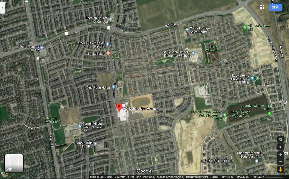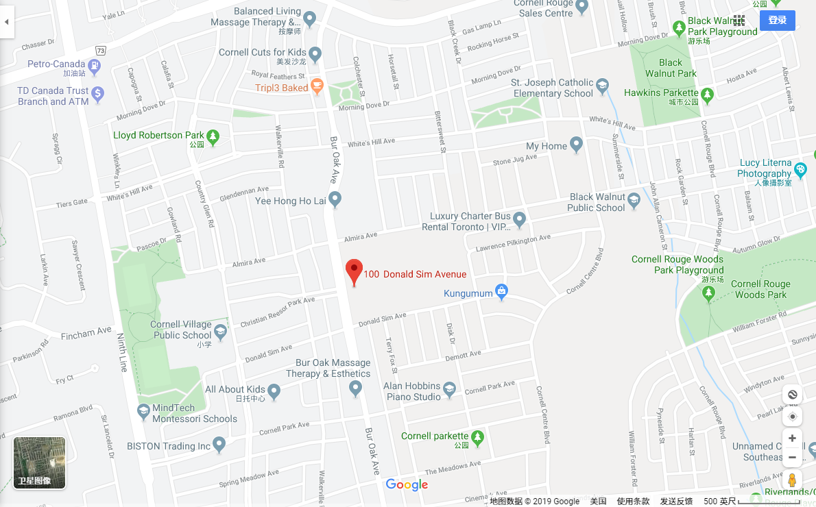 地址:100 Donald Sim Avenue,Markham, ON. L6B 0R4. 毗邻中心医院与图书馆,交通生活便利。