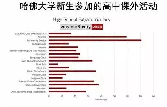 在考试、语言成绩普遍偏高的大趋势下,课外活动日益成为申请美国大学的重点竞争领域。据世界排名第一的哈佛大学录取数据显示:高中成绩满分的学生仅有百分之十会被录取,美国高考SAT接近满分的学生不到20%会被录取。