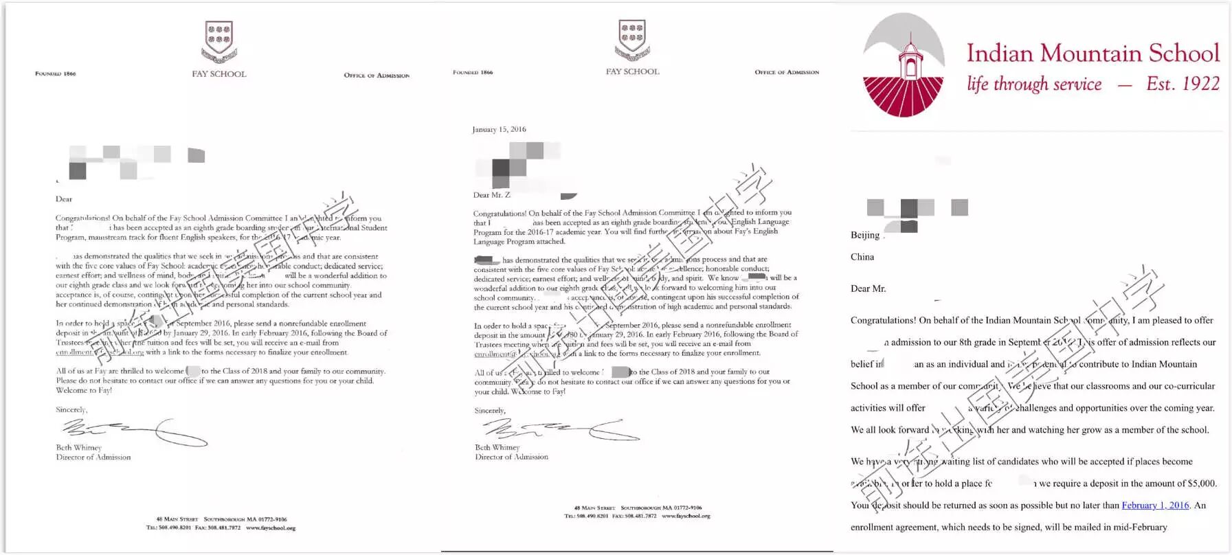 录取院校:2016秋季入读Fay School