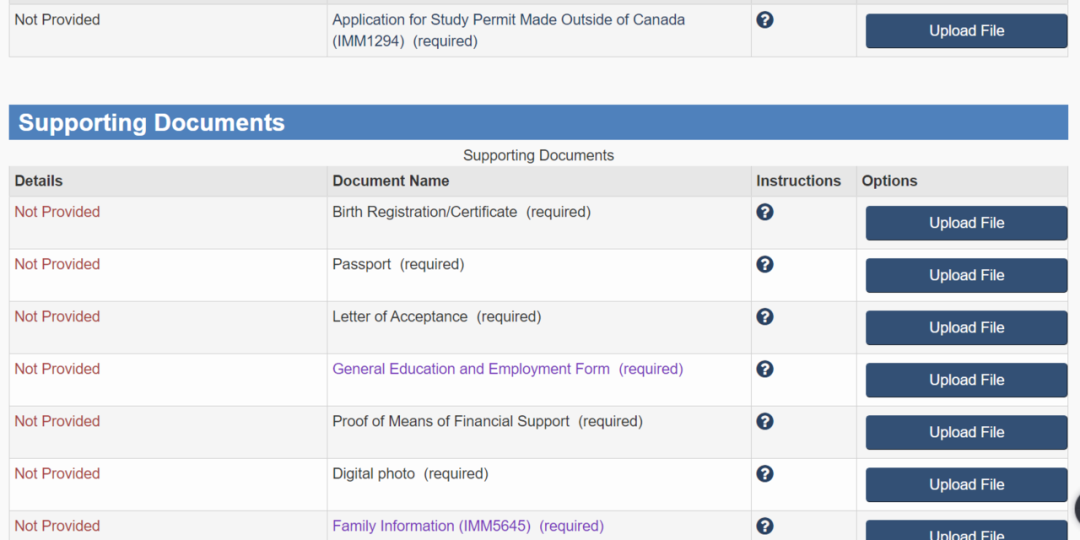 以下页面是学生签证申请文件的上传入口,按照这份清单分类整理好材料,并清晰地扫描好资料后,上传到对应的入口就可以顺利地提交网签申请了。