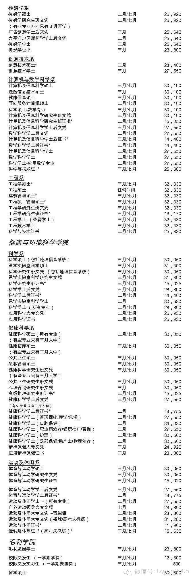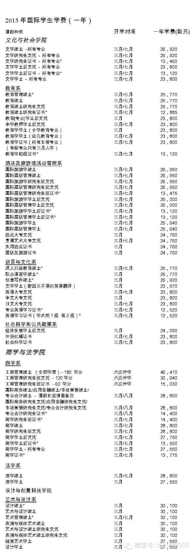 以下是AUT大学2015年的课程列表和学费清单哦~