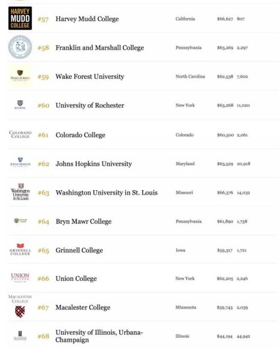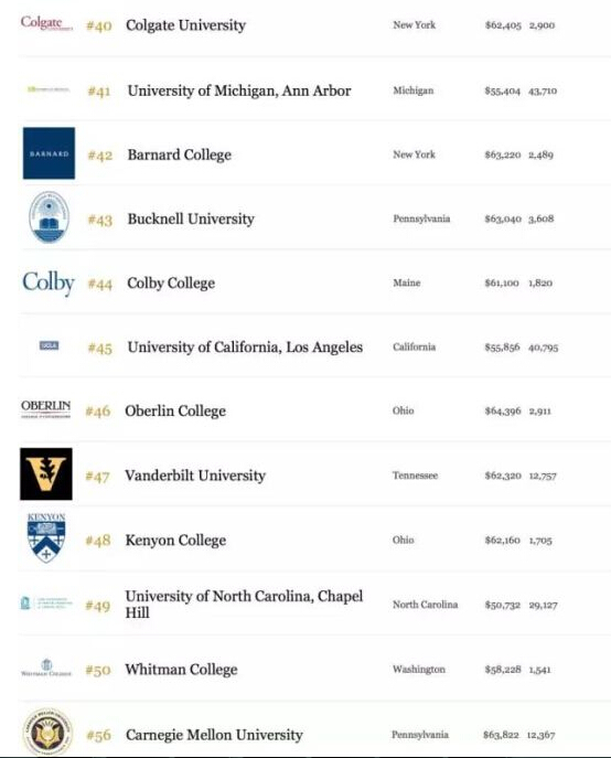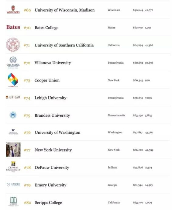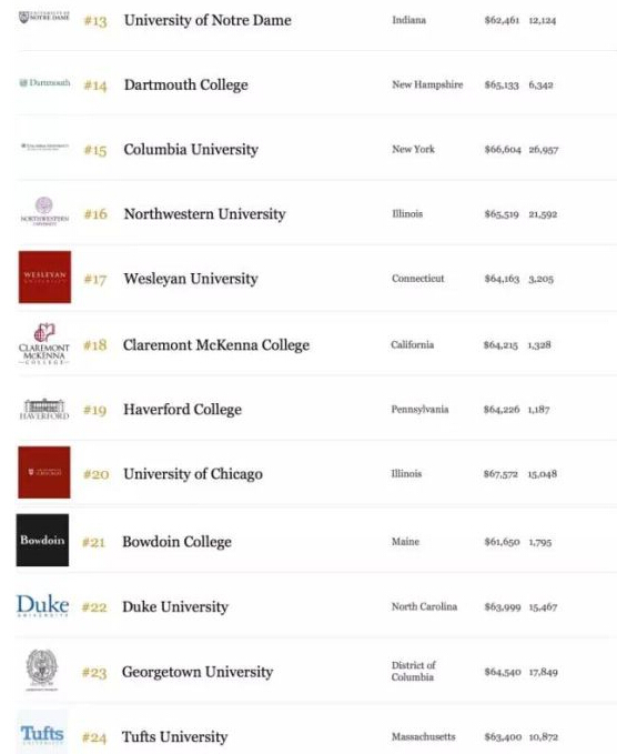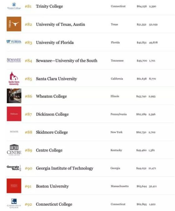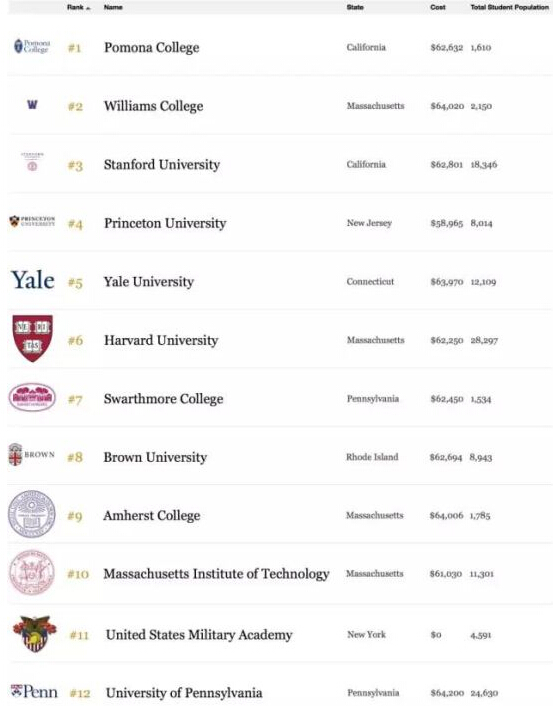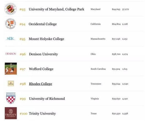 废话不多说,就让我们看看通过福布斯的标准来看看2015年美国最好的100所大学: