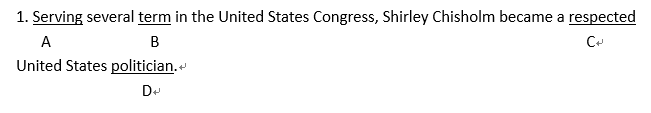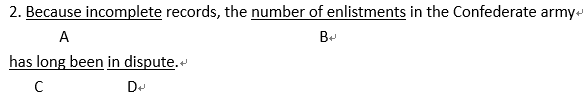 判断并选择被下划线标出的四个部分里哪一个是错误的。
