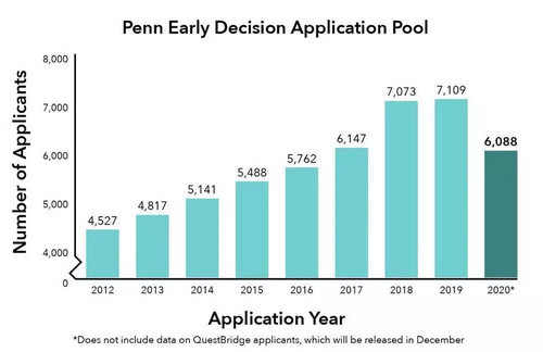 这是否意味着进藤校的难度降低了?很遗憾,答案可能并非如此。在去年的招生季,宾夕法尼亚大学共收到了7109份早申申请,而今年这个数字下跌了14%——相比较申请人数的“跳水”,录取率的涨幅就显得微不足道了。宾大招生办主任Eric Furda十分直白地表示:“根据我与其他同行的交流结果,总体而言,各校早申请阶段(无论是EA还是ED)的申请人数均有不同程度地减少。”