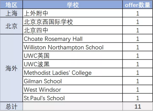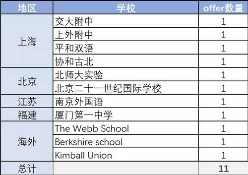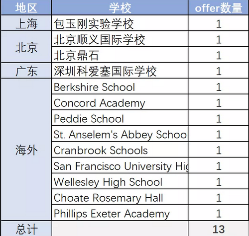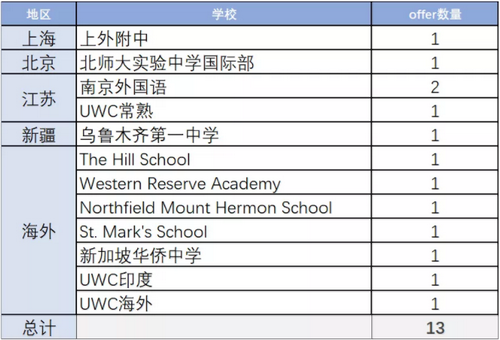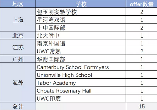 相较去年国内的三枚offer都落在北师大实验、南外、上外附中这些传统名校相比,今年耶鲁的offer明显更为分散,有越来越多的民办国际学校得到了认可。