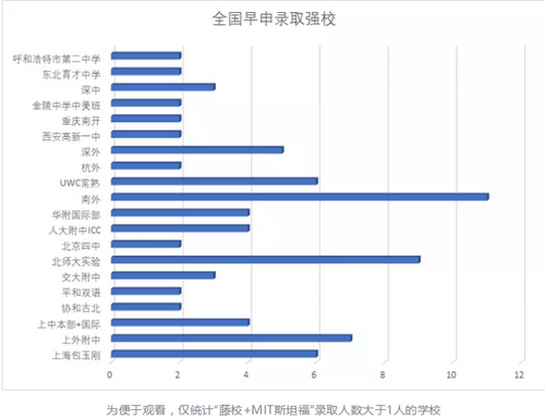 比起之前由几所传统出国强校独占鳌头的情况比起来,今年的早申涌现了一批“新秀”,而且分布地域广泛,不再集中于传统的北上广深。