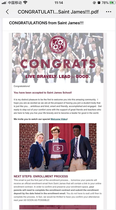 在这个时候我们的学生已经收到了来自马里兰州最好的寄宿中学 圣詹姆斯学校