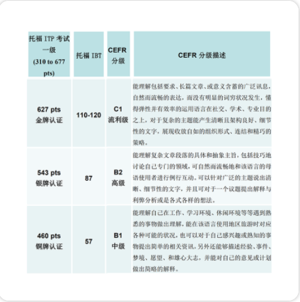 咱们一起来看一看ITP是怎样对应托福考试和CEFR分级。
