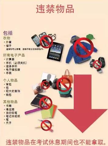 2. 所有考试科目结束前,考生不得携带或使用手机等违禁物品。如考生被发现携带手机等违禁物品,将被驱逐出考场,并不会取得考试成绩,考生将不再允许再次参加考试。