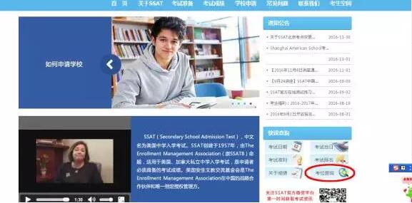 登录SSAT中文官方www.ssatcenter.com首页,右下方点击“考位查询”,输入准考证号码、和考点等信息,点击查询获得你的考室和座位信息。