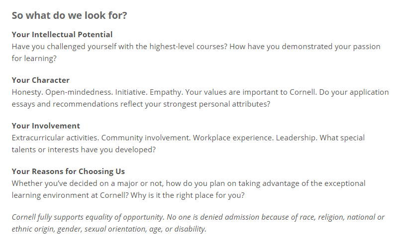 那么究竟什么样的学生才能幸运被康奈尔选中呢?学校官网上给出了明确的答案: