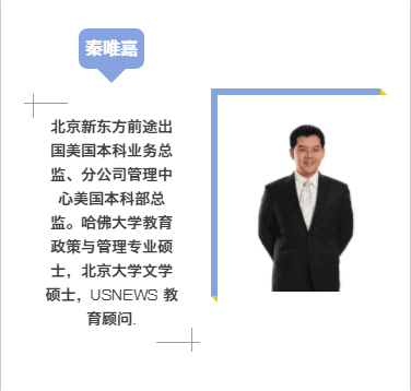 | 15:30--16:00 | 美国本科申请趋势分析 | 秦唯嘉 | 新东方前途出国美国本科部总监 |