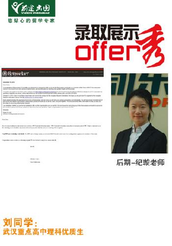 国内重点高中,像L同学这样理科不错的男生一抓一大把,高中毕业后考入武汉的重点院校热门理工专业对他们来说也不算难事。但是L同学有自己的一番志向,不想在国内成为一名技术宅,他想去美国获取最前沿的理工科知识,想成为改变世界的人。通过与留学顾问沟通,他锁定伦斯勒理工学院为自己的dream school来做早申请。L同学在10月就拿出合适的标准化考试成绩,托福首战96,赛达刷分到2050,并用两门赛达2理科满分成绩锦上添花。最后虽然有比较高的高中平时成绩,但作为国内重点高中的学生,简历上的课外活动只能是中规中矩,沟通过程中后期老师发现学生在武汉火车站做志愿者工作经历了2012年春运,从中挖掘出这位理科男孩温情、感性、有着极强的社会责任感的一面,书写出common申请系统中课外活动短文的亮点。而在回答加州大学申请文书问题“你来自怎样的家庭”时,将一个父母离异的男孩成熟、健康、积极、学习父母双方优良品格的独立乐观的形象展现给招生官员,治愈系的文章让加州大学欧文分校在3月初就给出了录取信,热情邀请L同学的加入。