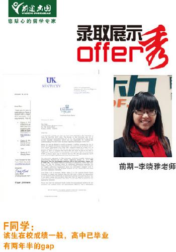 最后,这个学生一次性过签。整个申请过程和签证过程都很顺利。只能说这个学生的成功三分靠运气,七分靠打拼。学生和老师的密切配合是我们成功申请学校的关键。