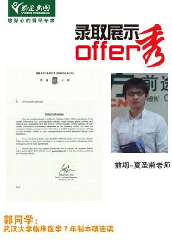 这位同学是武汉大学临床医学7年制本硕连读。医学专业留学一直是个难题,国内的临床医学一直被国外所不认可,能申请到PHD的可能性很小。但是在这位同学沟通后发现,她有很多的论文和科研都是在细胞和生殖领域,而她本人也对此领域非常感兴趣。PHD的难度在于寻找研究领域和导师。在学生和后期老师的共同努力下,光第一封套词信就多达1000字,research proposal更是修改了一遍又一遍。 可惜,很多学校都以名额已满,没有能力带学生为由拒绝学生。部分学校如爱丁堡同意接受学生,但是需要学生自己支付学费和实验费。经过不懈的努力,最终80封套词信终于打动了港大的教授,在免除学费的前提下给予学生每月13600港币的奖学金。