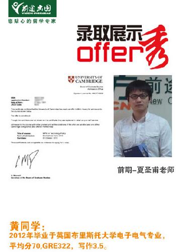 这位同学去年6月毕业于英国布里斯托大学,成绩达到了first class(按照英国的教育制度,first class属于全系最优秀的学生),同时他在国内高中毕业的时候就已经拿到了雅思7.5的高分,可以说不管是在学术条件上还是在英语水平上都非常的优秀。 在收到剑桥大学的拒信后,学生来到新东方。于学生沟通后发现,学生只想去最顶级的学校,对国家没有太大的限制。 于是学生在去年12月份分别与美国,欧亚,与英国顾问签订合约,申请包括牛津,剑桥,哈弗,耶鲁,加州大学伯克利分校,香港大学,新加坡国立大学等学校。