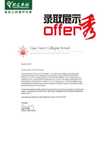 难点分析:但是以学生此时的托福成绩还不足以去冲刺Cape Henry Collegiate School. 这个学校要求托福必须要有80分以及SSAT的成绩. 学生