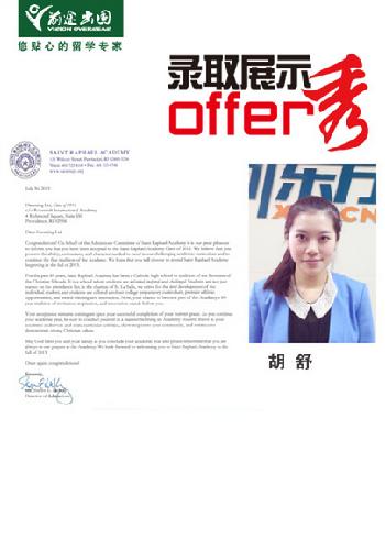 申请流程:该学生是2013年5月份找到我们,欲申请2013年9月份得美高10年级。由于申请空余给我们的时间不多,加之语言成绩不是很理想,但是其英语沟通能力还是比较ok。通过多次和学生沟通,挖掘到该生的情商很高,独立能力、适应能力很强,并且有着很强的生意头脑。因此在选择学校的时候根据学生的特点选了1所弗吉尼亚的贵格派中学以及2所罗德岛的中学。在申请过程中,通过2次对学生的面试指导,将学生曾做过小生意为亮点以此引起学校对学生的兴趣。最后学生被3所高校所青睐。且3所均为SAT均分高达1800的蓝带中学