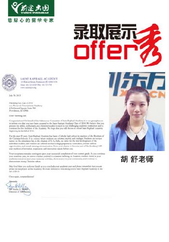 申请流程:该学生是2013年5月份找到我们,欲申请2013年9月份得美高10年级。由于申请空余给我们的时间不多,加之语言成绩不是很理想,但是其英语沟通能力还是比较ok。通过多次和学生沟通,挖掘到该生的情商很高,独立能力、适应能力很强,并且有着很强的生意头脑。因此在选择学校的时候根据学生的特点选了1所弗吉尼亚的贵格派中学以及2所罗德岛的中学。在申请过程中,通过2次对学生的面试指导,将学生曾做过小生意为亮点以此引起学校对学生的兴趣。最后学生被3所高校所青睐。且3所均为SAT均分高达1800的蓝带中学
