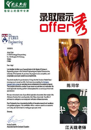 皇天不负有心人,终于在12月圣诞节前夕,这位同学收到了宾夕法尼亚大学的录取通知书。