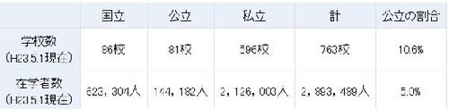 (2011年度日本国公立、私立大学在籍学生总人数)