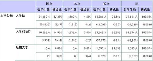 不可回避的一个事实是,与欧美诸国相比较,日本大学在大规模接收留学生方面仍处于劣势,最大的问题便是大学国际化程度偏低,直接表现在授课语言日语为主,这使一些想选择日本留学的外国学生不得不重新学习语言。虽然,近年来,大学英语授课科目出现增加,但要在留学生接收数量上达标,日本大学还需痛下苦功。国立大学协会的目标是在授课科目英语化方面有所突破,具体目标是在2020年前,使大学外籍教员人数比例能够达到6.4%,英文授课科目达到2万4000门左右。