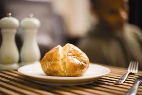 还有一种食品叫做“皮夹克土豆(JacketPotato)”。之所以叫做“皮夹克土豆”,是因为土豆是带皮烤熟的。烤好的土豆带着皮,颜色鲜黄,香气四溢,十分诱人,看上去就像是人穿了漂亮的夹克衫一样。把熟的土豆一切两半,底部不要切开,在里面就可以如同夹汉堡一样夹入各种蔬菜沙拉,干酪,沙丁鱼和调料,然后用勺子舀着吃。在英国,专门的连锁店出售“皮夹克土豆”已经很普遍了,因为这也是英国人喜吃的一种食品之一。