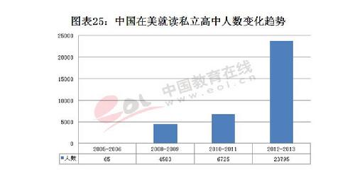 国际教育研究所(Institute of International Education,IIE)8日发布最新报告显示,就美国读高中的国际学生在2013年升至73,019人,其中有46%来自中国。2013年中国在美国读高中的学生人数超过三万。