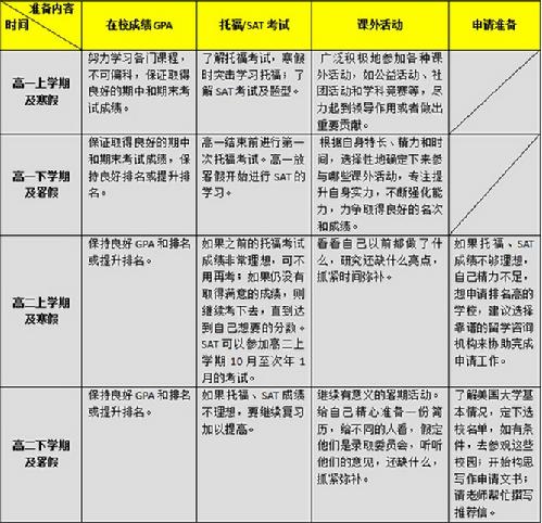 在了解了美国前50名校的录取标准后,接下来我们就可以围绕这些要点来详细地规划高中三年的准备工作了。