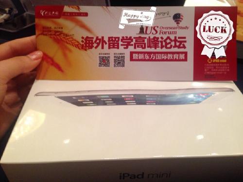 活动在下午6点才最后结束。同学们不但了解到最新的留学资讯、一睹哈佛哥哥秦唯嘉和新东方大神叶炼的风采、现场进行外教口语测试,还有两位特别幸运的签约学生抽中了我们的特别大奖:iPad mini一台!