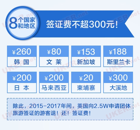 签证费用便宜了。去这些地方,签证费统统不超过300RMB。