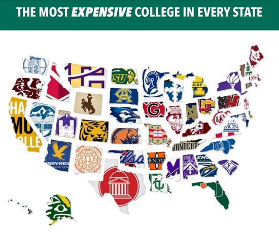 注:这一数字指的是本州学生住校的费用,如果住在校外 (绝大多数学校一年级不准住在校外,二年级后允许)自己开伙可以省一些钱。