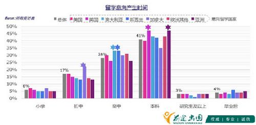 当前的出国留学群体呈现出年轻化的特点,有45%的留学生在中学阶段就产生了留学意向。去加拿大留学的学生甚至计划得更早。