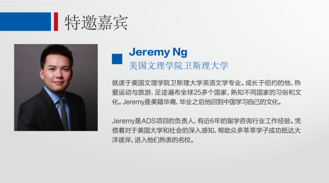 ADS项目集能力拓展与语言训练为一体,让学生真实体验美式课堂、提升英文应用能力的同时,掌握申请技能,并不断认识和挑战自己,与外籍专家一同为自己打造个性化的名校申请,圆梦美国名校。