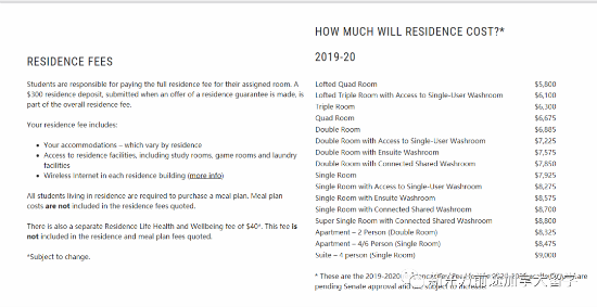 以性价比最高的Lofted Quad 为例,一年的住宿费约为5800加币起。