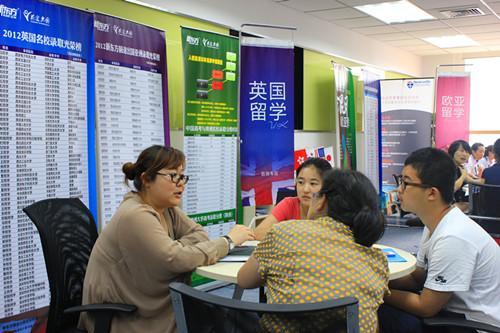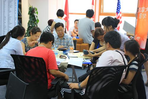 家长和学生认真地听留学专家给出的方案和建议