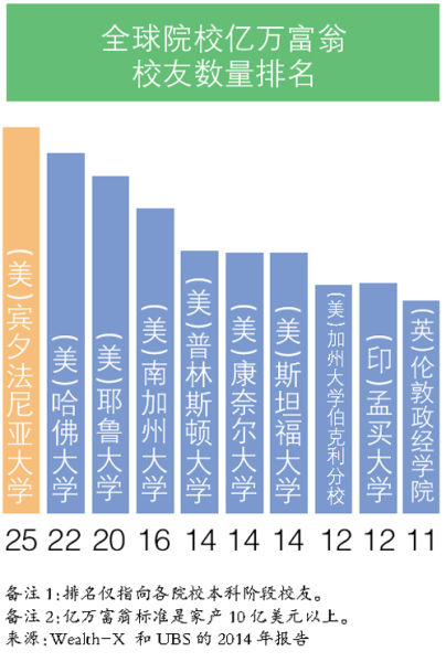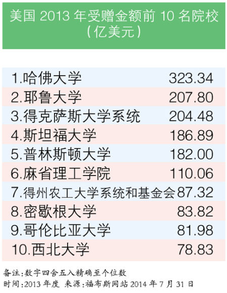 财富和名校是美国媒体长久不衰的话题,而且两者还经常被联系起来:哪所大学产生亿万富豪最多?哪所大学接受捐赠最多?美国大学最大的捐赠来源地都有哪些?
