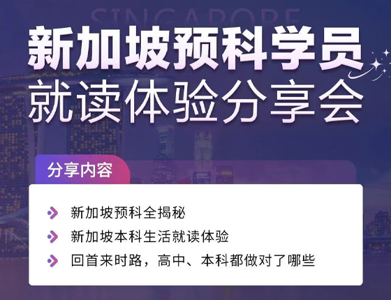 您的位置: 首页>宜昌>热门活动>250218|新加坡预科学员就读体验分享会