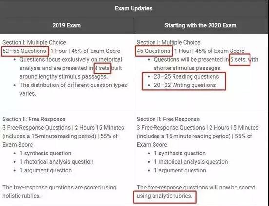 2020年的考试中将采用analytic rubrics代替holistic rubrics的评分标准;
