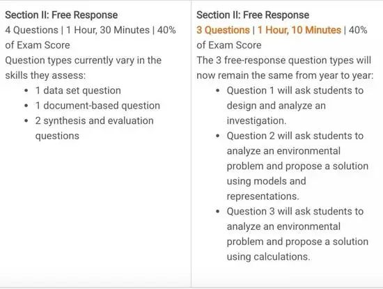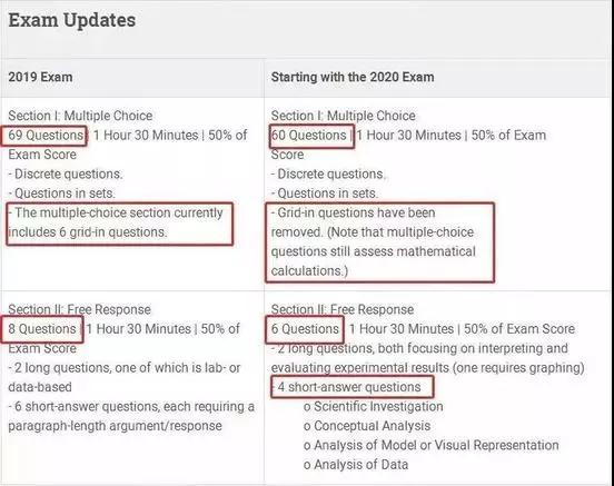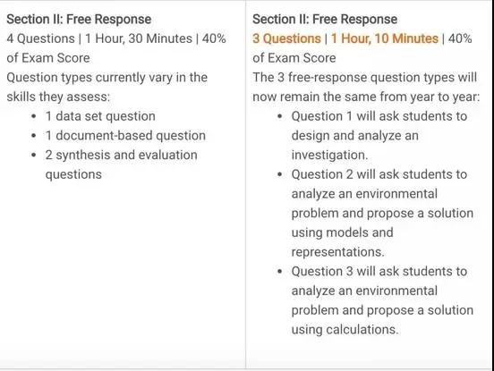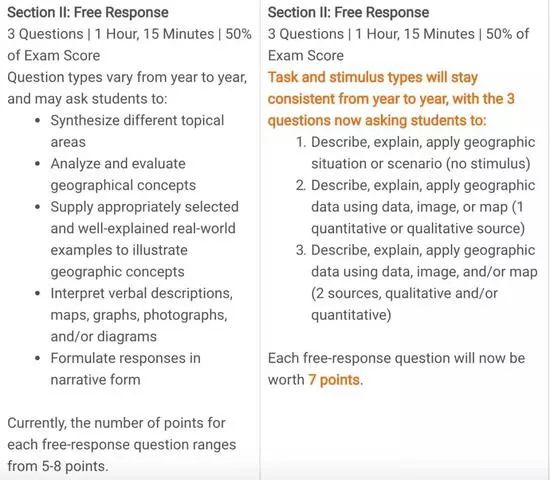3)FRQ题目数量由4道题目变为3道题目,时间缩短为70min;